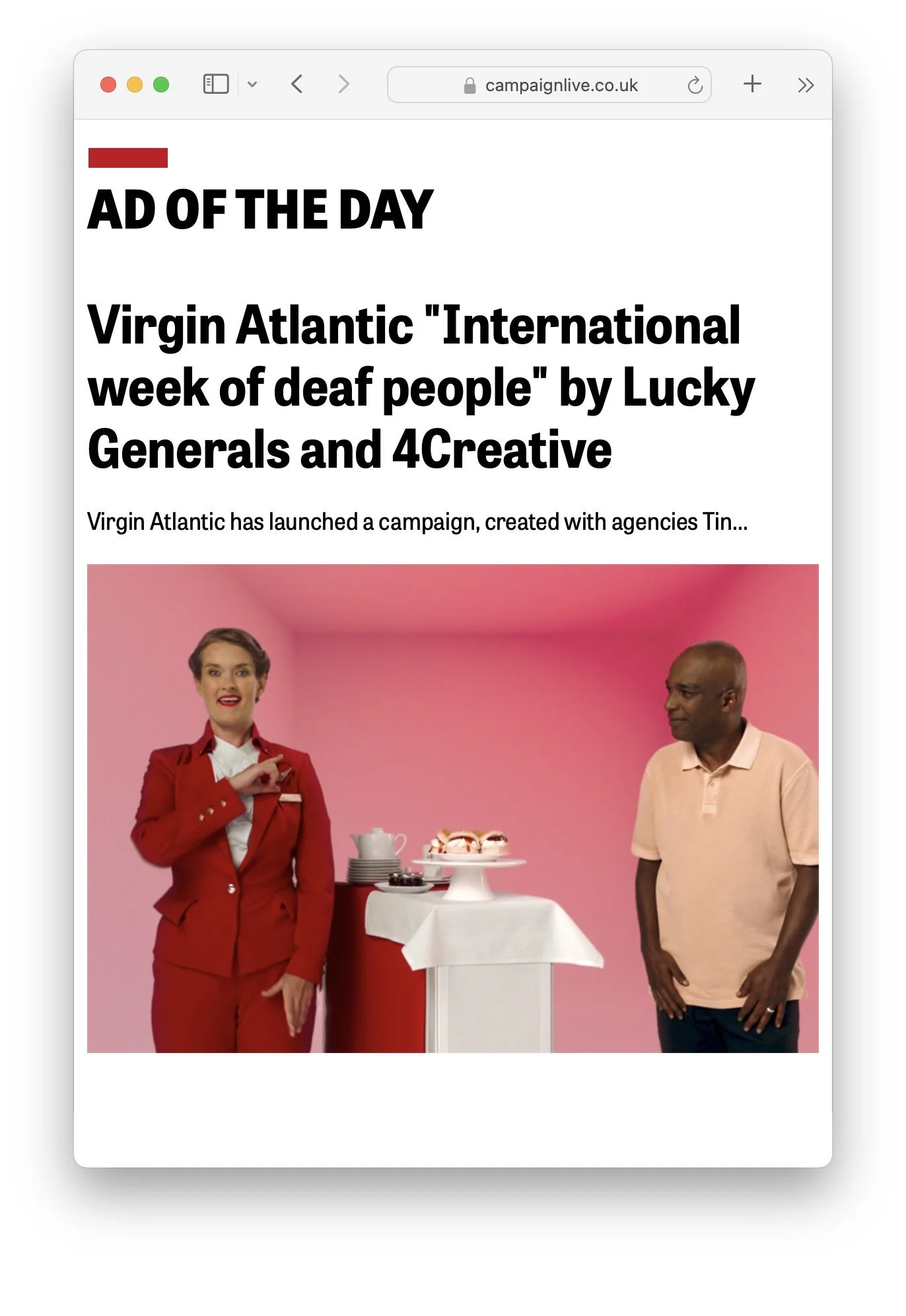 Too often the deaf community is an afterthought. Left out. We partnered with Channel 4 to give everyone a taste of what that feels like, by creating a film which talks directly to the deaf community. Because Virgin Atlantic has BSL trained cabin crew on their flights.